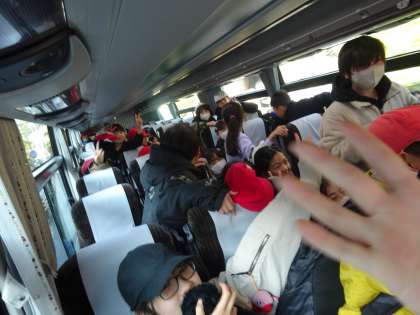 いよいよ清水門前会職業体験へ出かけます。バスの中では、わくわくがとまらない様子でした。