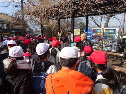 お店に行く前に、諸注意を聞いています。集中して聞くことができました。