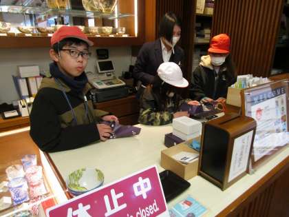 お客さんに商品の味見を配ったり、呼びかけたりしていました。