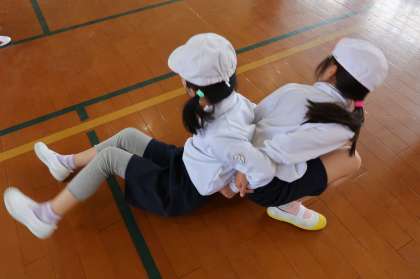 ペアでストレッチをしたり、友達と一緒に体を動かしたりするなど、きまりを守って楽しく体を動かすことができました。