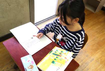絵をよく見てわかることを、「どこで」「どんな人が」「どんなことをしているのか」に気をつけながら、文章に書きました。