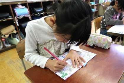 書き順や、とめ、はね、文字のバランスに気をつけながら1文字1文字丁寧に書くことができました。