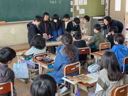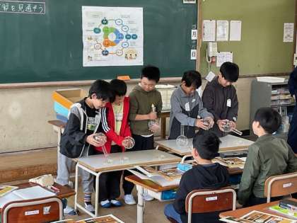 4年生の理科では、1年間でどんな学習をするのかを教科書を見ながら確認しました。また、フラスコの口にシャボン玉の液をつけて、フラスコを握ると不思議な現象が起こることを知り、驚いていました。
