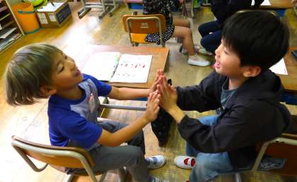 ペアでリズムよく拍子をとりながら歌うことができました。
