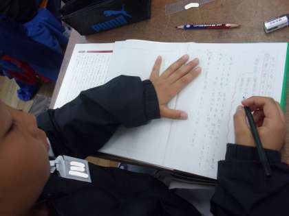 今日は、「見立てる」の要旨を捉えました。筆者の考えの中心となる事がらを捉え、ノートにまとめました。初めての学習に、戸惑っている様子もありましたが、最終的には上手にまとめられました。