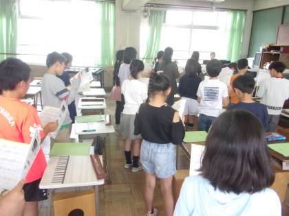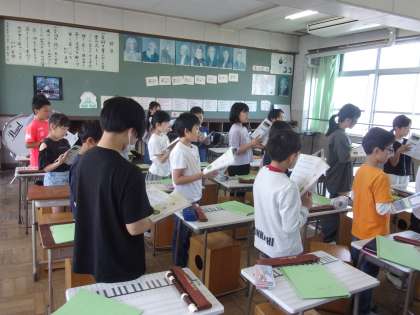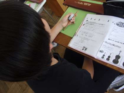 今日は、鑑賞の学習でした。旋律の重なり方や楽器の音色を意識して鑑賞していました。ワークシートに気が付いたことをたくさん書いていました。