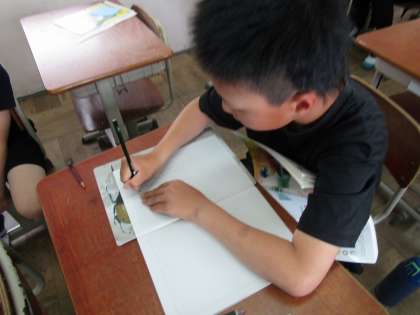 今日は特に印象に残ったところについて文章で書きました。登場人物二人のそれぞれの視点で書かれていること、「言葉の伝え方」について考えたこと、登場人物の心情の変化など、今までの学習を生かして書きました。友達との関わり方について考えながら書くことができました。