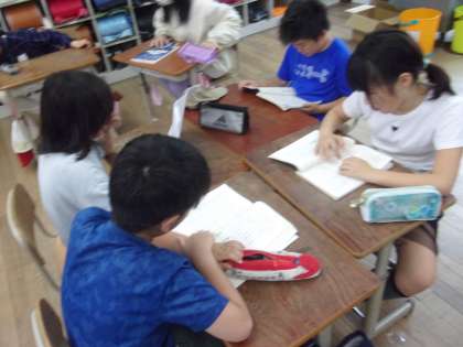 5年生は朝読書の時間に、国語の教材をグループ音読しています。朝からみんなで協力して、音読しています!