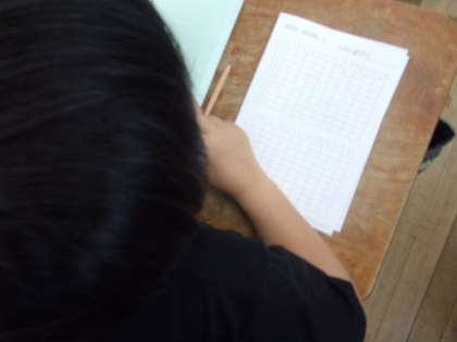 5年生では、授業のすきま時間に百マス計算を行っています。素早く、正確に、そしてキレイにやることができたかな?