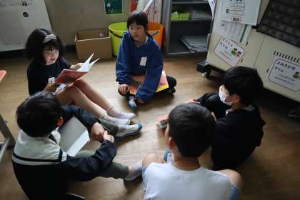 先生が夢中になっていることを聞き取り、メモを取りました。その後、教室に戻ってきて交流しました。