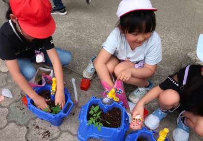 今日の生活の学習で、トマトの苗を植えました。