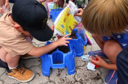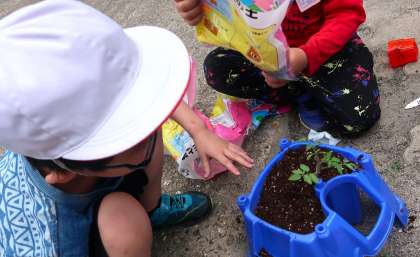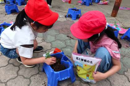 「大きくなってほしいね」「真っすぐに植えられてるかな」と楽しそうに話しながら植えることができました。