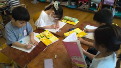 みんなが作った問題を聞き、メモを取って、話をよく聞いています。