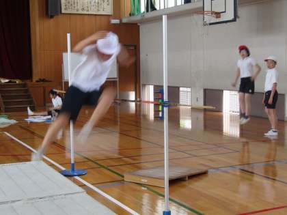 体育は走り高とびが始まりました。今日は自分がとべる高さがどのくらいなのかとんでみました。挑戦した高さがとべたときには「やったー!!」と嬉しそうでした。素早く振り上げる足が速すぎて見えませんね。どうしたら記録が伸びるのか考えていきたいです。