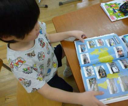 たしざんの学習をしました。問題を見て、指を使わずにうーんと考えていました。線つなぎにも挑戦すると、点から点までつなぐことができました。がんばったあとは、お気に入りの本を読みました。がんばっています!