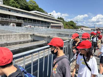 水を綺麗にするところを見学しています