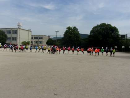 今日の体育は、学年合同で行いました。準備運動も活動も全員で行いました。お互いのクラスでの良いとび方や姿勢を確認していました。