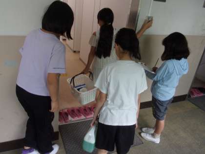保健委員は、休み時間に、トイレットペーパーの補充やスリッパの点検を行ってくれています。ありがとう!みんなも気をつけましょう!