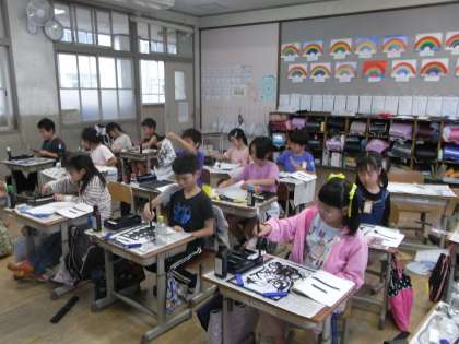 筆の感覚が鉛筆と違い、力加減をいろいろ試しながらの学習でしたが、集中して取り組むことができました。
