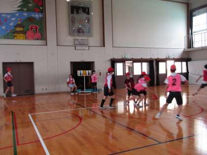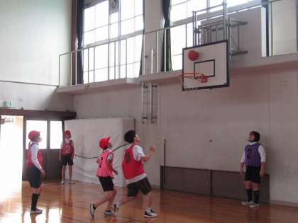 体育ではバスケットボールをしています。チームでパスをつなぎながらシュートを目指しています。味方や相手がどこにいるかを素早く判断してパスを回せるように頑張っていました。