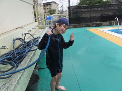 ホースで体を洗って、準備万端!!