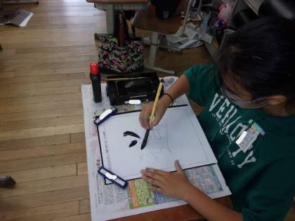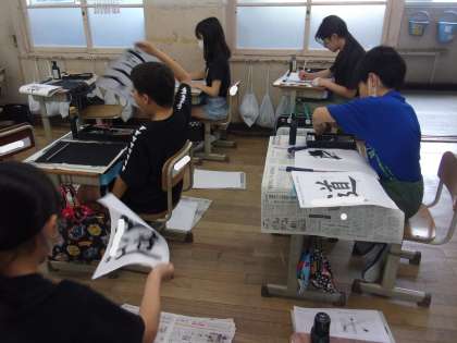 書写の学習がありました。穂先の動きに注意して、書くことができました。しんにょうに苦戦している児童がたくさんいましたが、最後は満足して書き終えることができました。