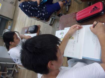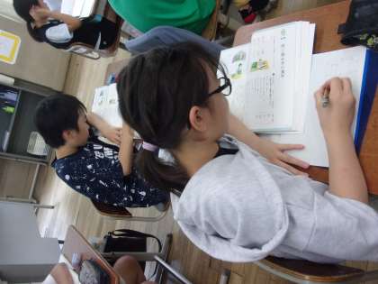 同じ読み方の漢字の問題に挑戦しました。時計の針が十二時を(指す・差す)。この問題にかなり苦戦していました。