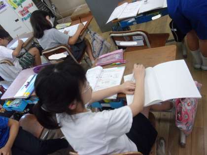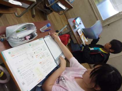 わり切れないときの商を概数で表す学習がありました。久しぶりに概数が登場し、一つ一つ丁寧に計算の手順を確認しながら問題に挑みました。