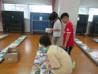 音羽小学校にたくさんの本がやってきました!!子ども達は部屋に入った瞬間、キラキラとした目で本を眺めていました。新しい本ってワクワクしますよね!!