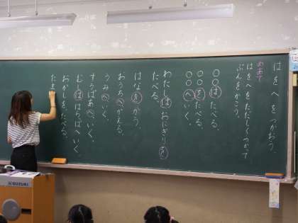 1年生の国語では、「は」「を」「へ」を使った文章について学習しました。