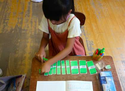 数え棒を使い、位に気をつけながら数字での表し方を話し合いました。