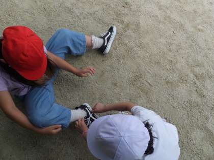 生き物好きの子どもたちは「あり」や「ダンゴムシ」を探していました。