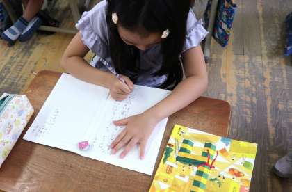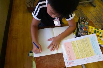 今日も引き続き、「はじめ」「中」「おわり」の組み立てを意識して文章を書きました。