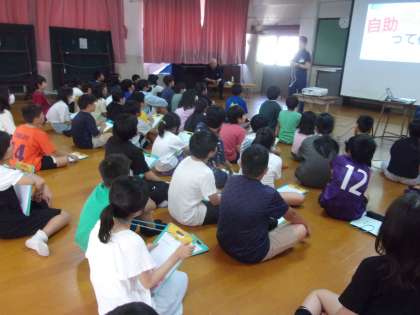 災害時における「自助」「共助」「公助」について消防士の方からお話を聞きました。過去の災害のデータや実体験をもとに、多くの貴重なお話を聞くことができました。今後の学習につなげましょう!
