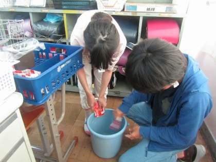 今週は牛乳パックしぼろう週間です。これは給食委員会の取組で、飲み終わった牛乳パックから牛乳が出ないくらいしっかりしぼろうというものです。1滴もたれないようにしっかりとしぼっています。