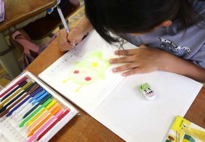 今日は、「こんなものがあったら素敵だな」「みんなが楽しくなるな」と思うものを考えて絵に表しました。