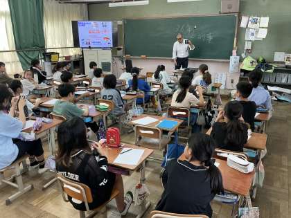 今日は山科警察署の方に来ていただいて、安全に過ごすために注意することや心掛けることをお話ししていただきました。お話の中で、「小さなきまりを守ることが自分を守ることにつながる」という大切なことを学びました。知らず知らずのうちに犯罪に巻き込まれてしまわないように、ルールを守り、正しい行動をすることの大切さを感じる時間になりました。