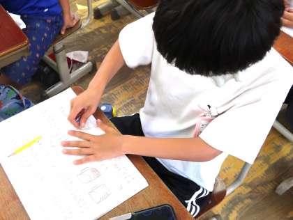 ます図に書き表したり、実際に水を計ったりしながら量の関係について考えました。