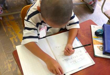 算数科では、かさの単位である「L」や「dL」について知り、水のかさを調べています。