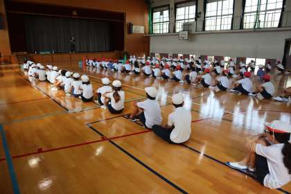 運動会の練習が始まりました。今日は鳴子を使って踊る曲の練習をしました。1つ1つ動きを確認しながら踊る姿が見られました。