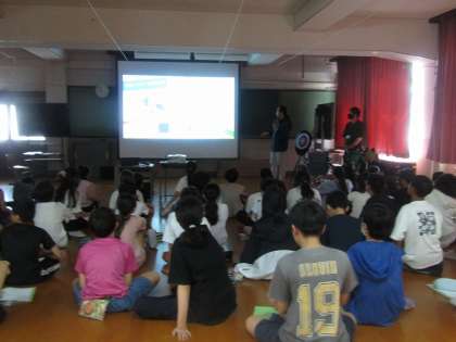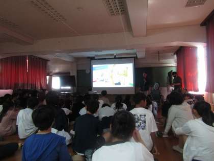 今日は、車椅子を使って生活する人や車椅子競技であるハンドアーチェリーについてのお話を聞きました。みんな真剣に聞いていました。