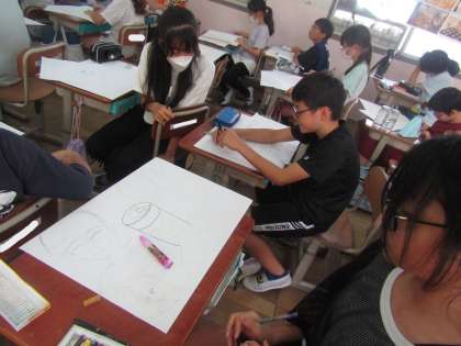 お話を聞いて、想像を膨らませて絵をかいているところです。どんな表情をしているかな?どんな風景かな?と想像しながら楽しんでかいていました。