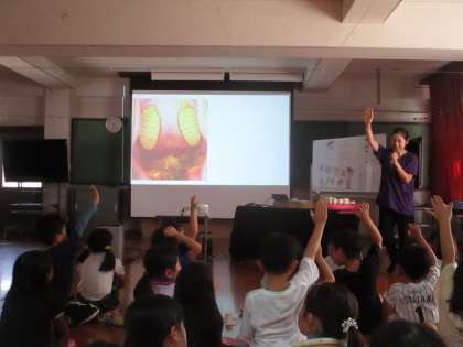 動物の歯のクイズ、虫歯にならないための方法、上手な歯の磨き方など、たくさんのことを教えてもらいました。