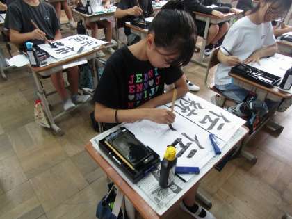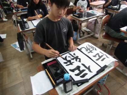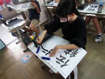 字の組み立てに気をつけてかいている様子です。部首とつくりのバランスを意識してたくさん練習していました。