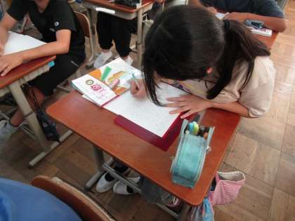 算数では、割合を表すものとして「比」というものを新しく学びました。今まで学習したことを使って友達と話し合いながら学習を進めています!