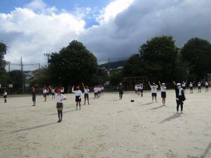 運動会に向けて5・6年生で合同練習が進んでいます。5年生が演技をしているときには6年生から聞こえる「かわいい〜!」。6年生が演技をしているときには5年生から大拍手。お互いに尊重しながら楽しんで取り組む姿が素敵です。来週の運動会頑張りましょうね!