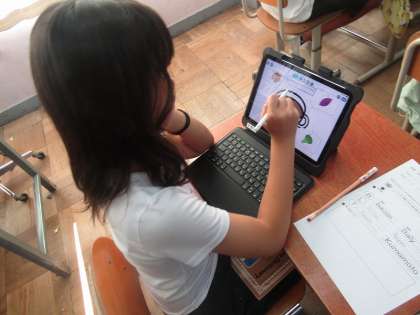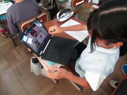 栄養教諭の船野先生が新しい給食メニューを作るのに悩んでいたので6年生の外国語の学習を使って、船野先生にオリジナル給食を提案するという学習をしています。給食の中に入れる食材がどこの国から来ているのかを調べ、船野先生に紹介します。その国の魅力についても伝えられるようにこれから学習をしていきます。