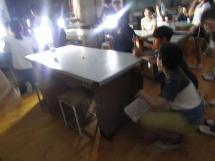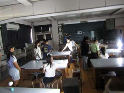 理科では、太陽と月の位置関係から月がどんな形に見えるかを調べました。実際に理科室を真っ暗にして太陽に見立てたライトだけをつけて班で調べました。タブレットで上手に撮っている班が多く、きれいな日月や満月が写っていました。