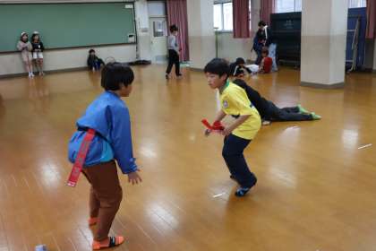 国語科の学習で話し合って決めた仮装をすることと、タグ鬼ごっこ、折り紙探しをハロウィンパーティーで行いました。それぞれの個性があふれた仮装でした。