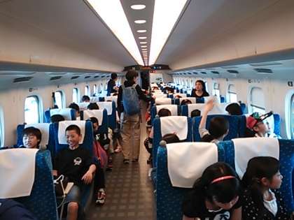 6年生の修学旅行は順調に進んでいます。新幹線に乗車し,これから広島方面に向かいます。